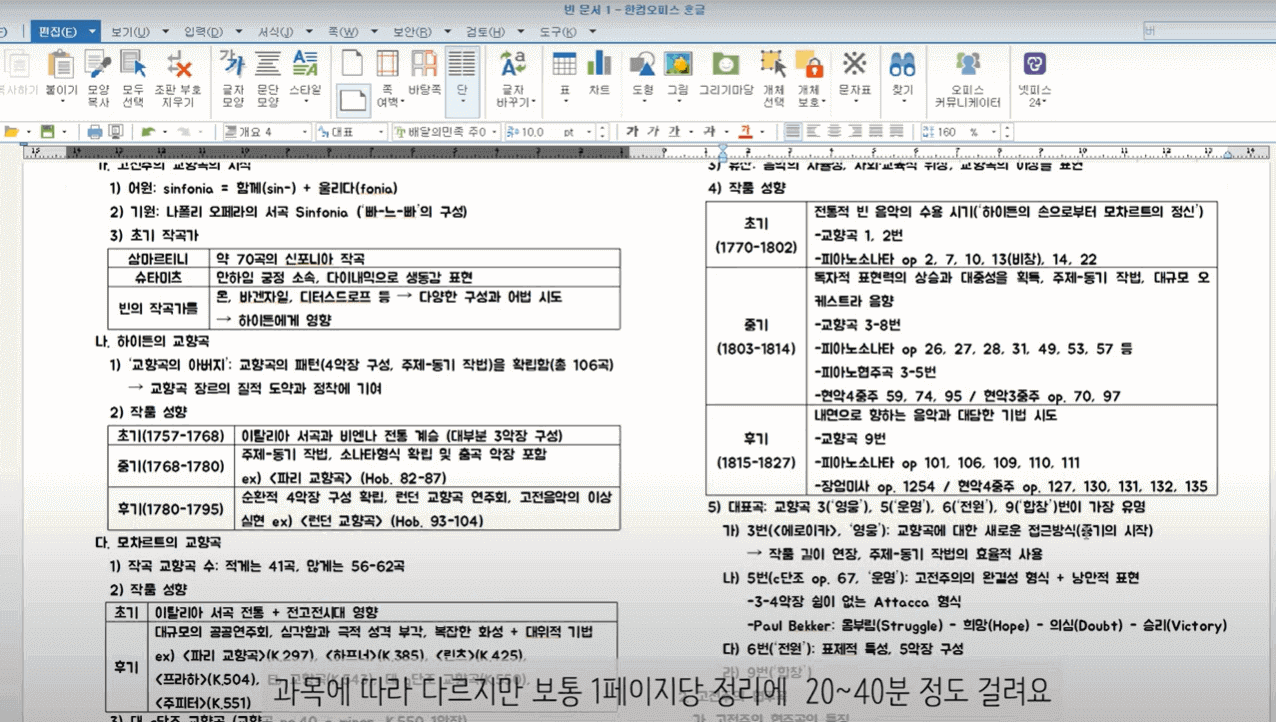 과목에 따라 다르지만 보통 1페이지당 정리에 20~40분 정도 걸립니다.