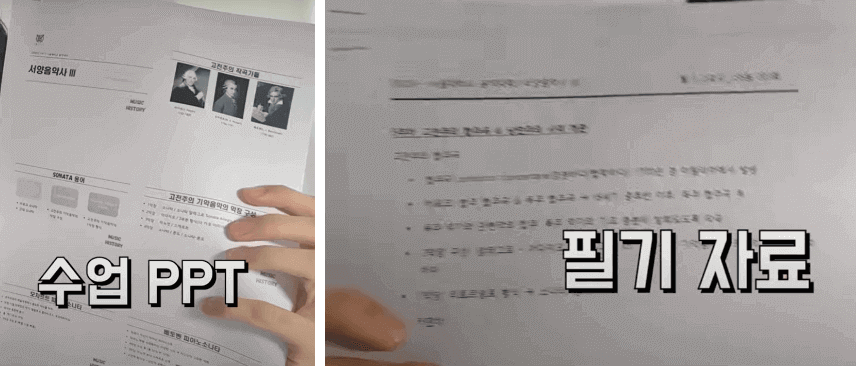 그러고 나서 빈칸을 계속 암기합니다. 즉, 정리된 버전은 책상 위에 놓고, 쪽지시험 버전은 손으로 들고 눈으로 따라 읽어가면서 빈칸을 마음속으로 채워나가 주시면 됩니다. 모르는 게 있으면 슬쩍 아래를 보고 커닝하면 됩니다. 다시 머릿속으로 계속해서 빈칸을 채워줍니다. 처음 시도하면 외우는 게 오래 걸릴 수도 있습니다. 하지만, 두 번째, 세 번째부터는 빛의 속도로 빈칸을 채우는 나 자신을 발견할 수 있습니다. 여기서 주의하실 점은 빈칸을 손으로 채우는 건 절대 추천하지 않습니다. 왜냐하면, 종이 낭비에 시간이 더 오래 걸리기 때문입니다. 마음속으로 빈칸에 들어갈 말을 생각하면서 외우는 것을 추천해 드립니다.