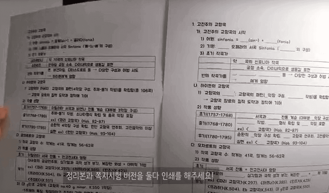 마지막으로는 정리본과 쪽지시험 버전을 둘 다 인쇄를 해주시면 됩니다.