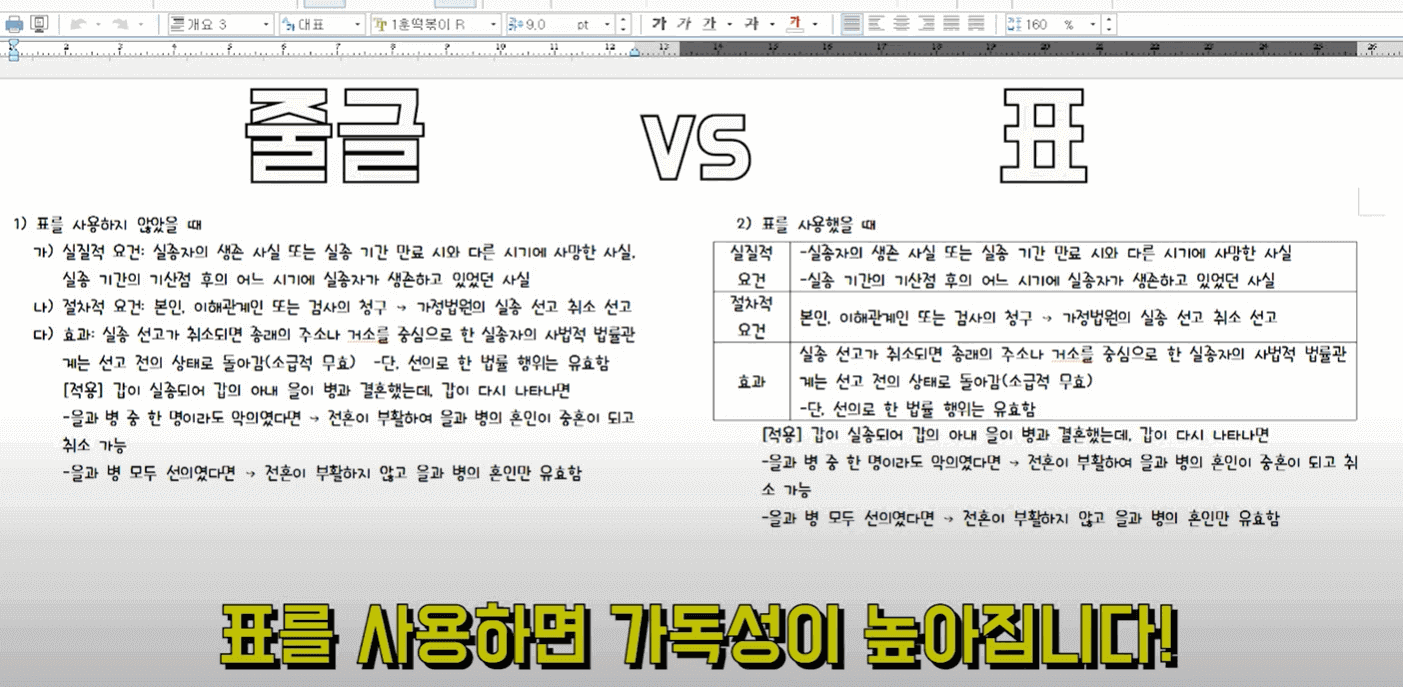 표를 사용하면 가독성이 높아집니다.