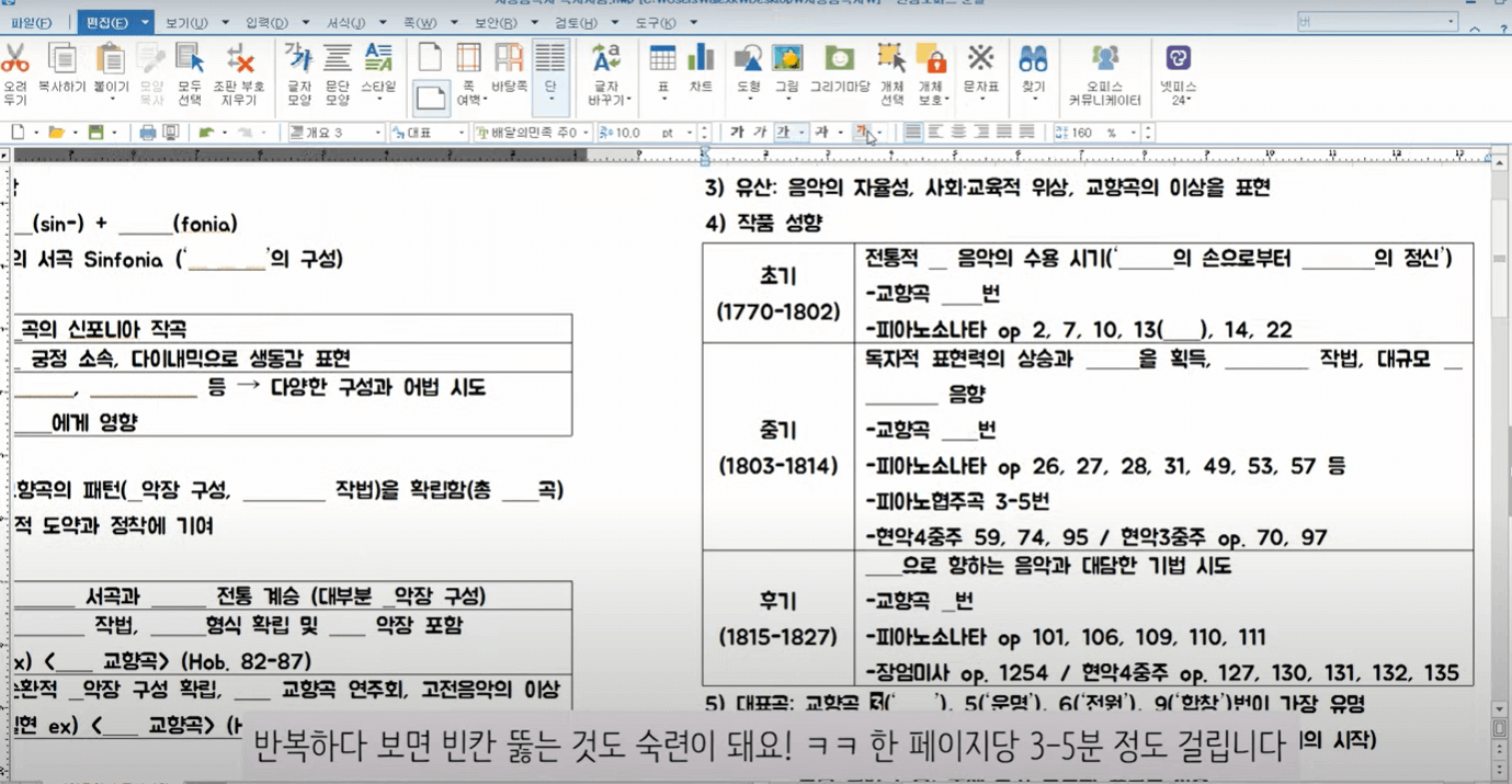 자료를 다 모았으면 모든 자료를 다 단권화해서 정리해야 합니다. 한 번 정리하는 것만으로도 1회 정독, 내용 흐름, 순서 파악의 효과가 있습니다. 암기과목의 특징은 내용이 엄청나게 많다는 것입니다. 손으로 정리하면 시간이 너무 오래 걸리기 때문에 아래 한글로 정리하는 것이 좋습니다.